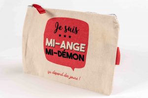 Soyez le premier à laisser votre avis sur “Pochette en toile à message -Je suis mi-ange mi-démon ça dépend des jours !”